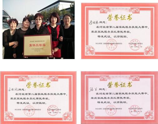 好月嫂被河北省人社廳、河北省家庭服務(wù)協(xié)會、分別評為 “河北省家庭服務(wù)業(yè)大型示范單位”、“河北省家庭服務(wù)業(yè)服務(wù)品牌” 的稱號