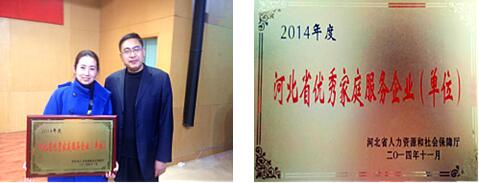 愛之馨榮獲由河北省人力資源和社會保障廳頒發(fā)的“2014年度河北省優(yōu)秀家庭服務(wù)業(yè)單位”稱號