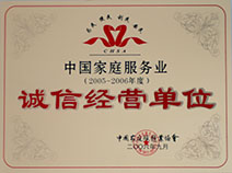 1、好月嫂被中國家庭服務(wù)業(yè)協(xié)會評為“2005-2006年度誠信經(jīng)營單位”的稱號。