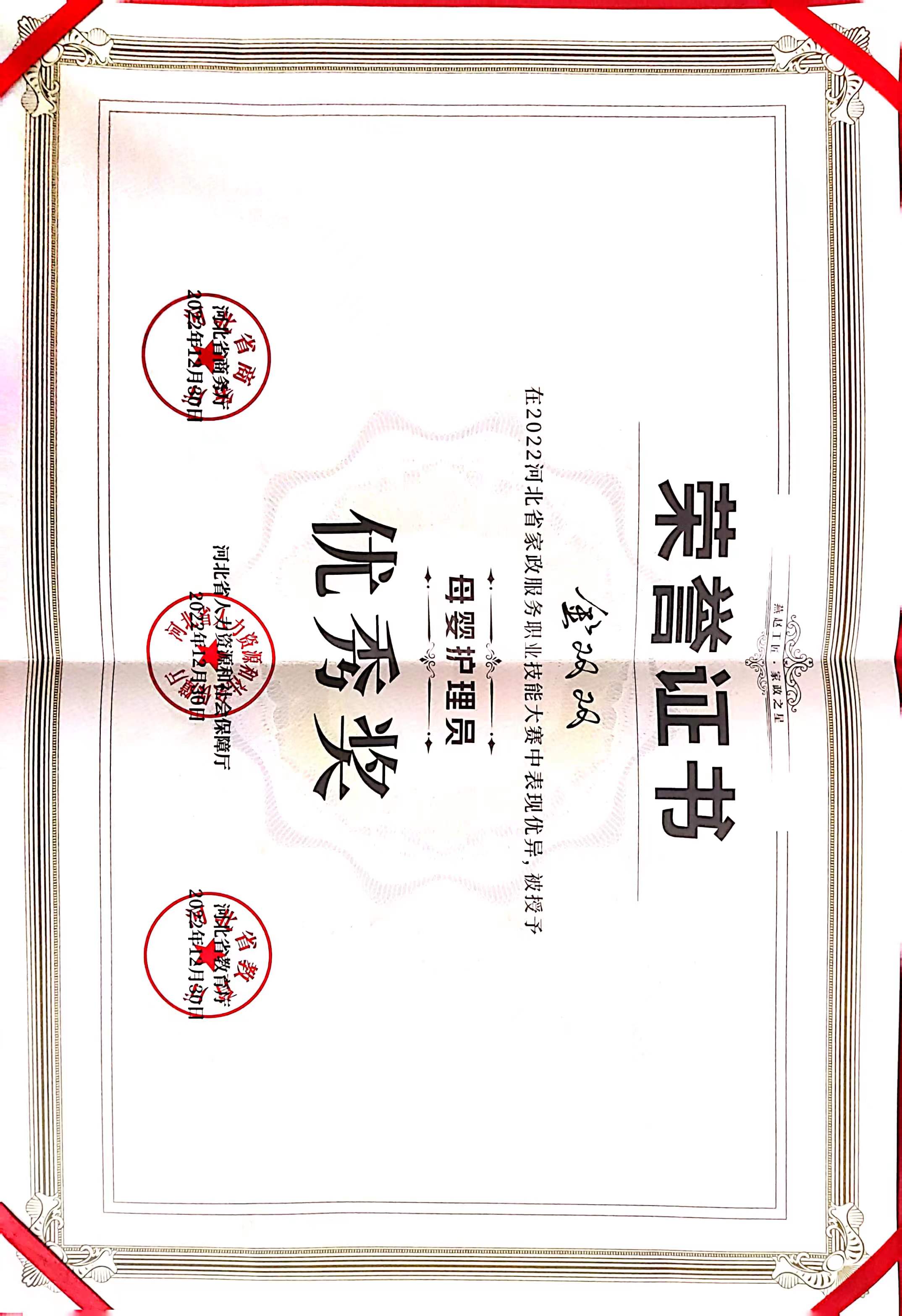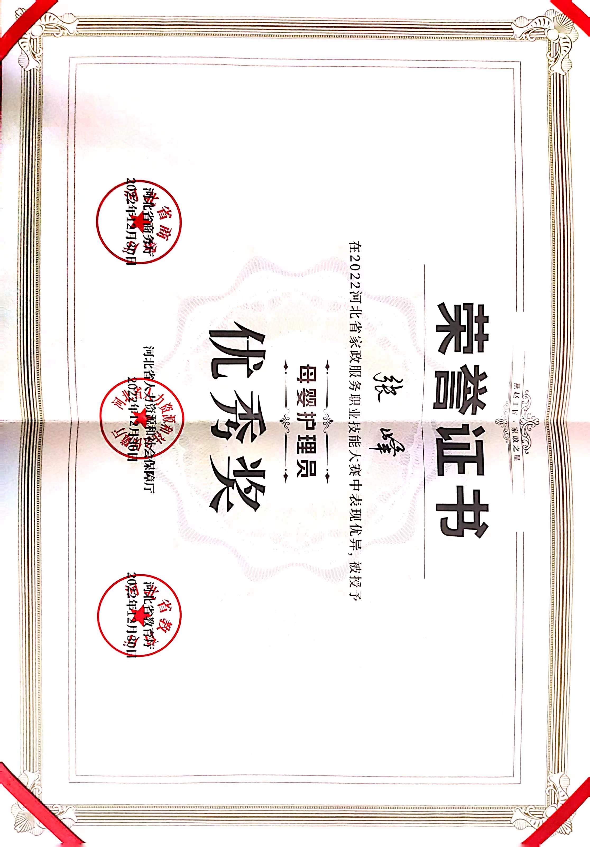 母嬰護(hù)理員優(yōu)秀獎(jiǎng)