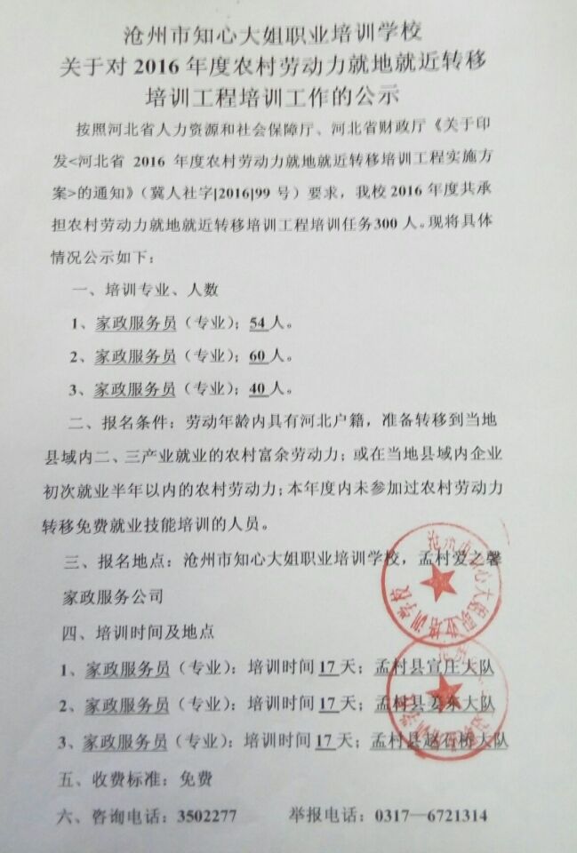 2016年9月14日孟村勞動力轉(zhuǎn)移公示